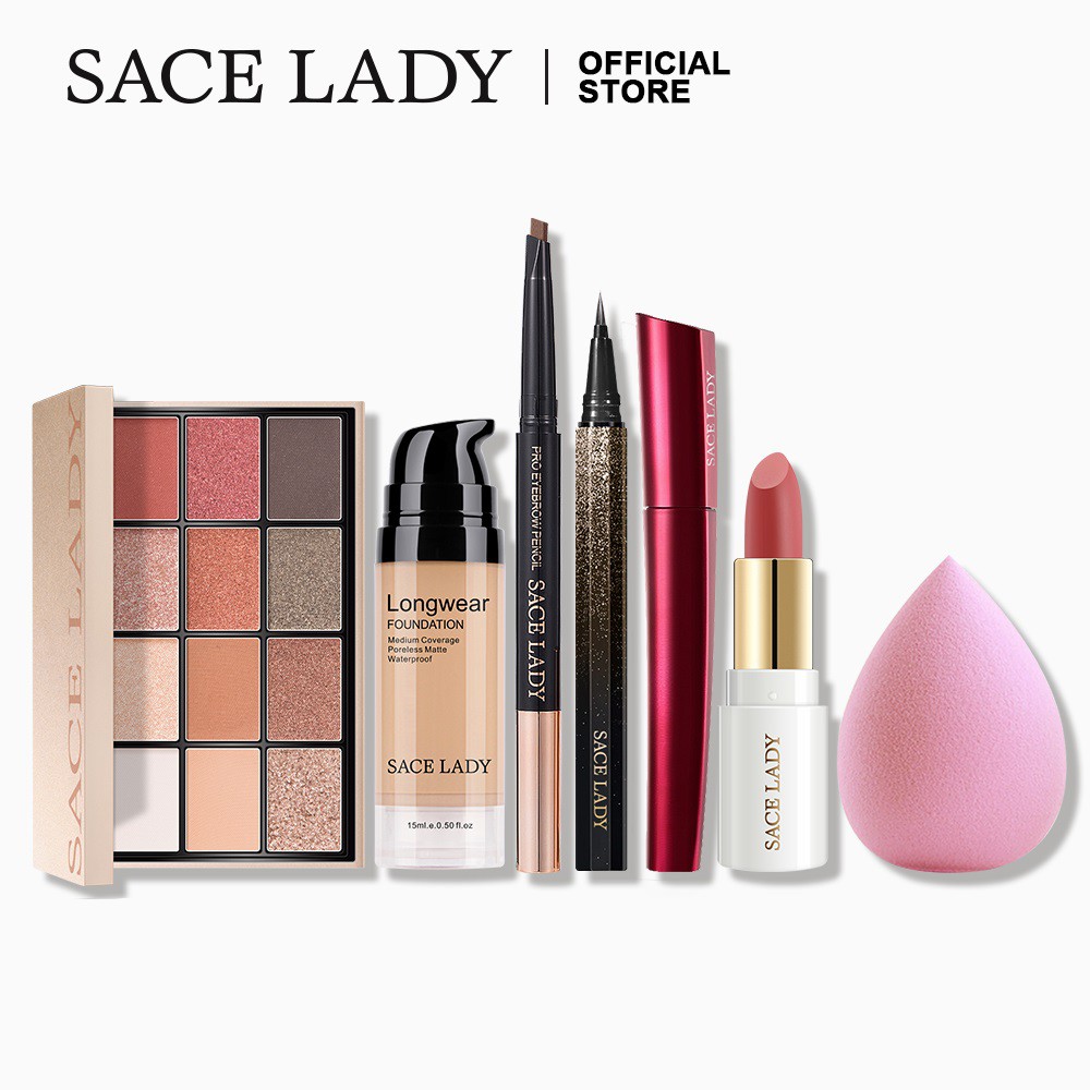 Bộ mỹ phẩm SACE LADY son môi/bút kẻ mắt/kem nền/chì kẻ chân mày/bảng phấn mắt/mascara/mút tán phấn nền chất lượng cao free ship