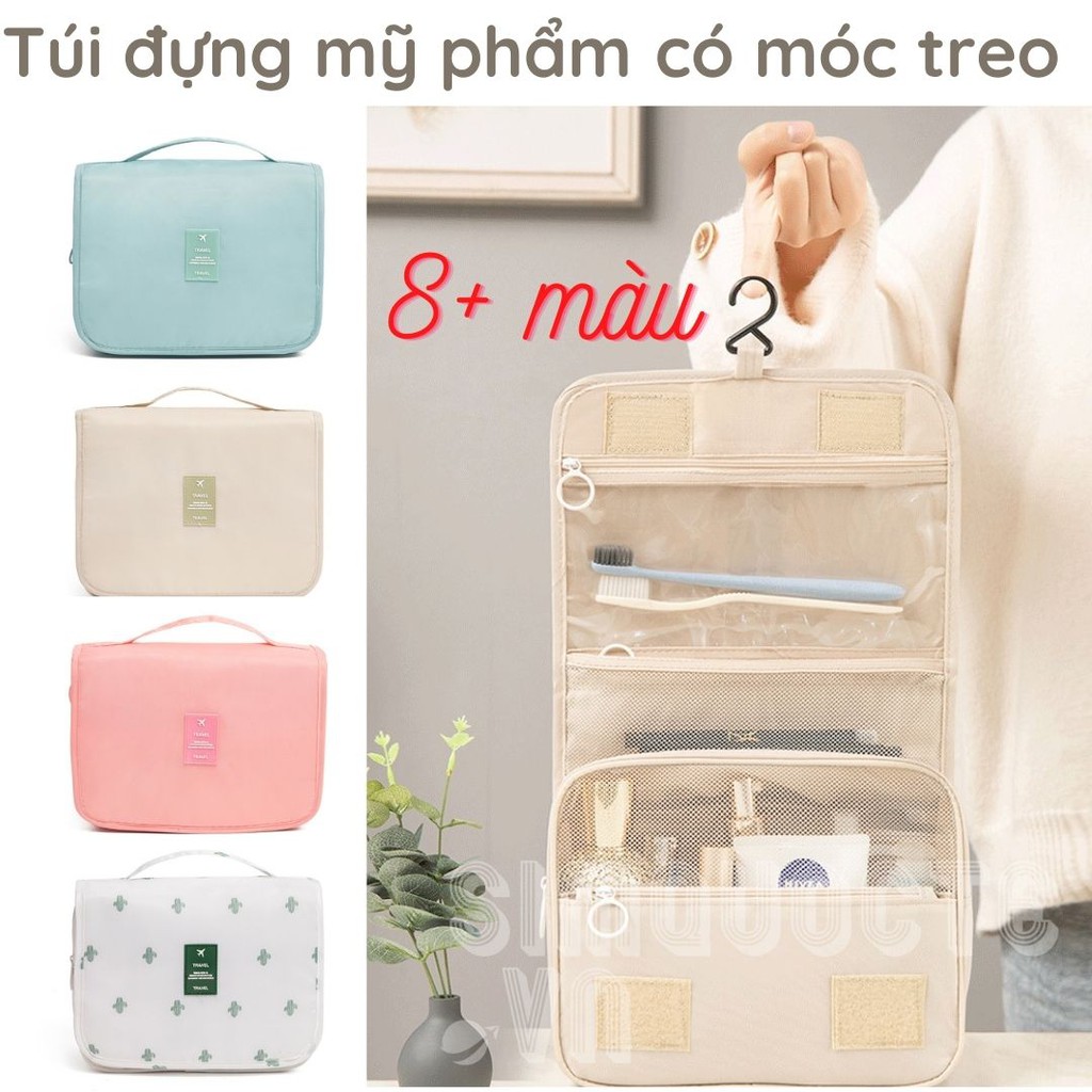 [Size to] Túi đựng mỹ phẩm đồ du lịch đa năng có móc treo free ship