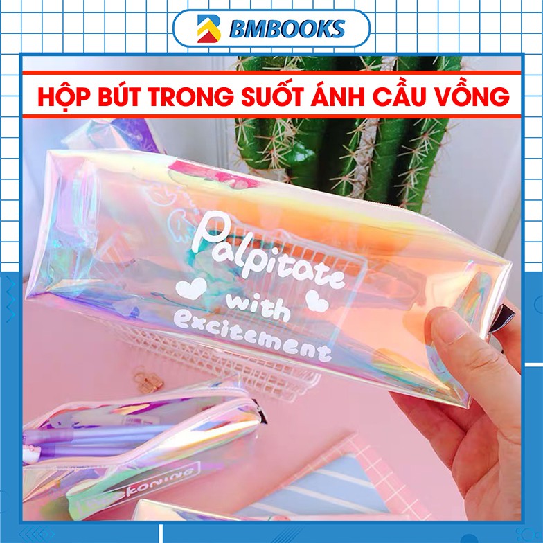 Hộp bút trong suốt ánh cầu vồng chuyển sắc Hologram độc lạ đựng bút, đồ dùng học tập, mỹ phẩm, đồ dùng cá nhân BMBooks free ship