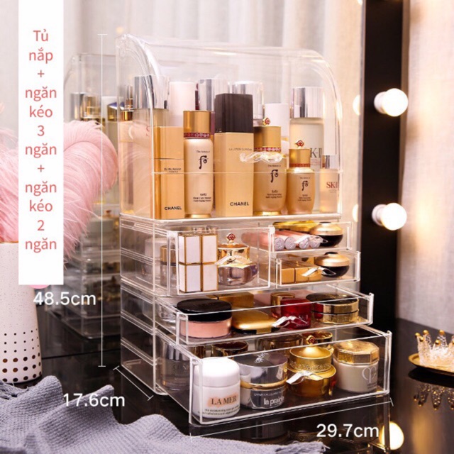 [ Size 29.7 cm] Hộp đựng mỹ phẩm có nắp mở chống bụi + ngăn kéo free ship